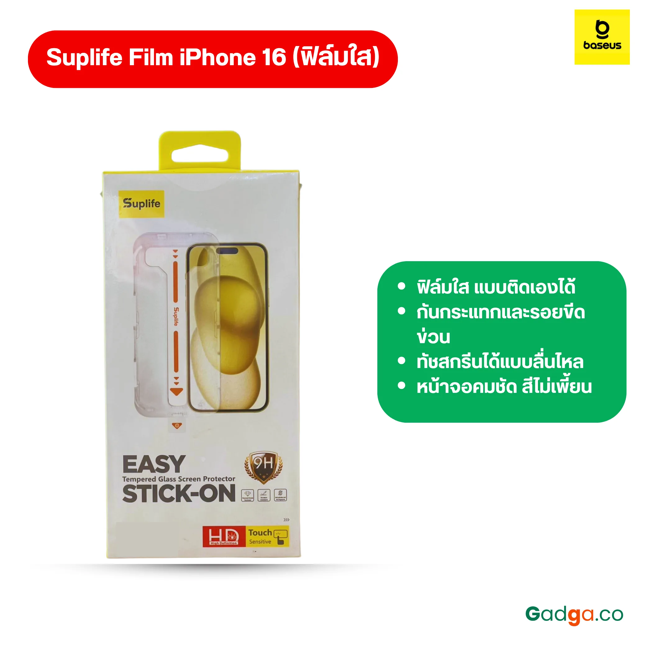 Suplife Film ฟิล์มกระจกกันรอย รุ่น iPhone 16 (ฟิล์มใส)